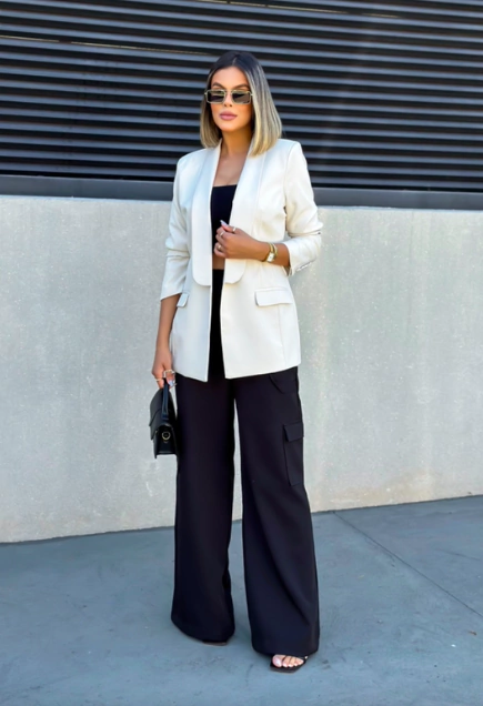 Blazer alongado e forrado. Alfaiataria encorpada!